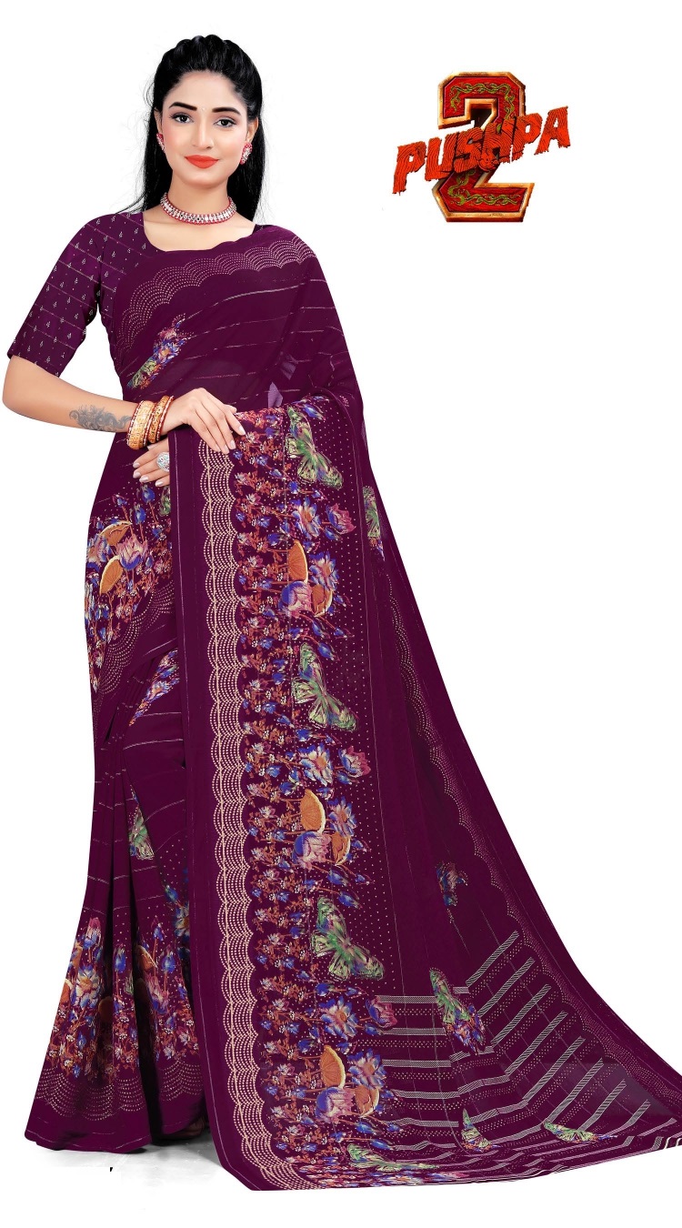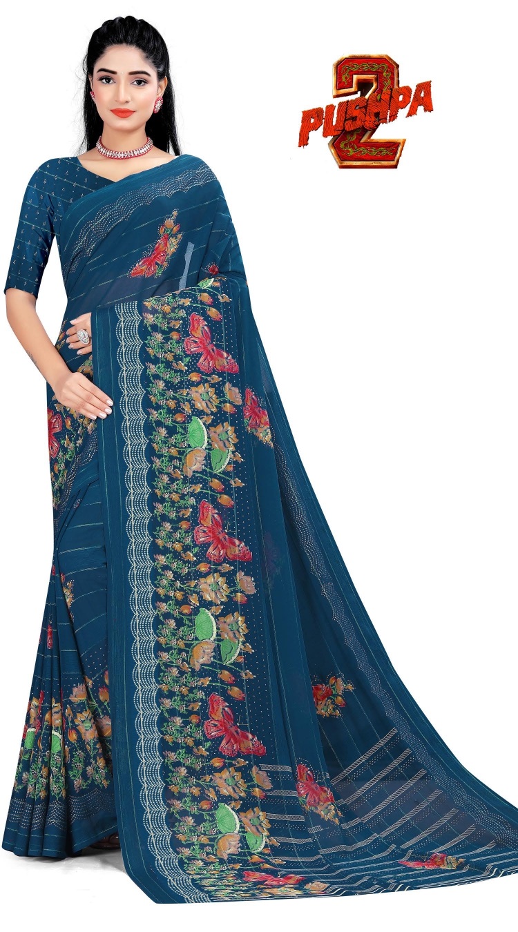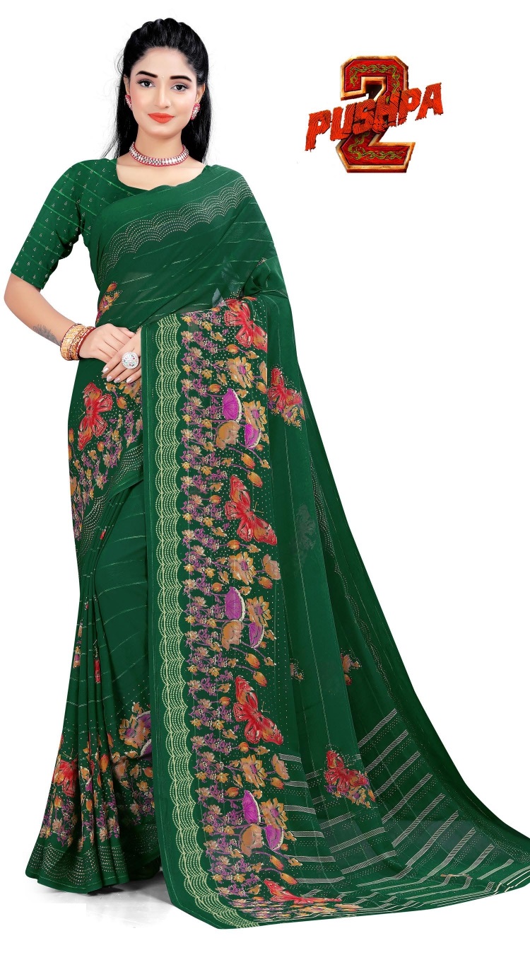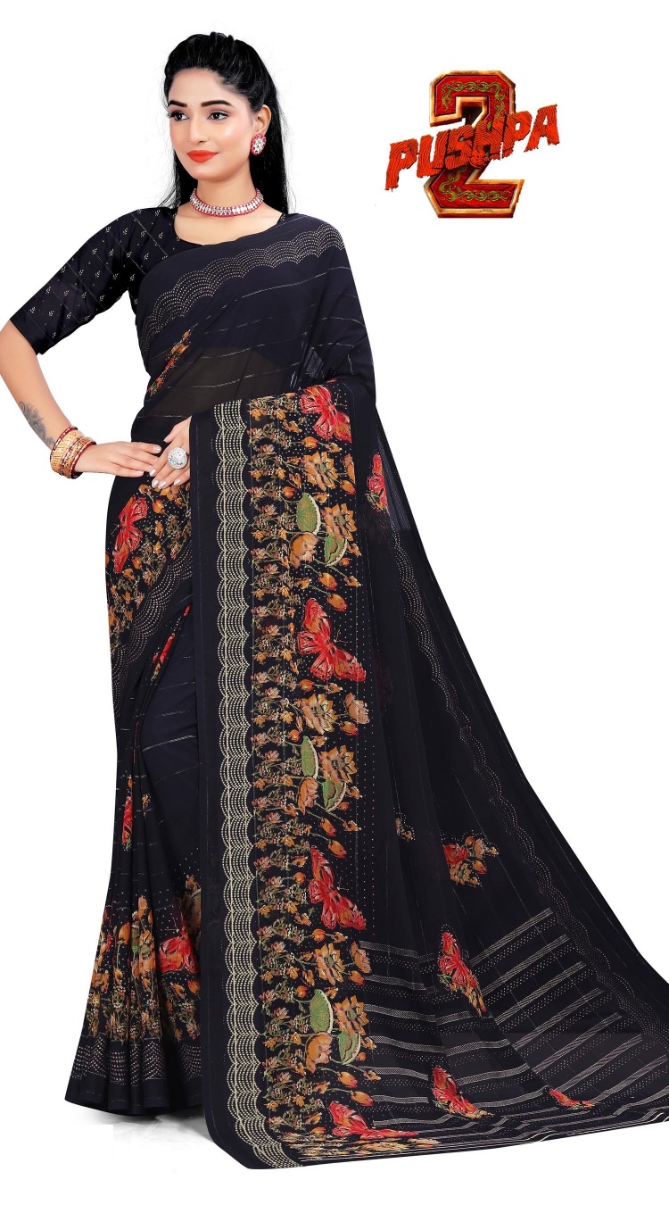 Pure Georgette Sarees, Motifs such as Dark Colour with Leafy Printed Design with Blouse, Colurs Available , More affordable but lightweight alternative
