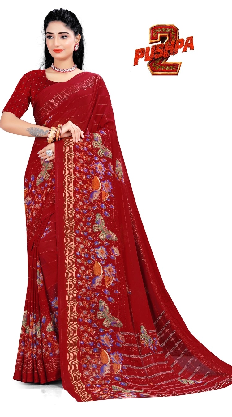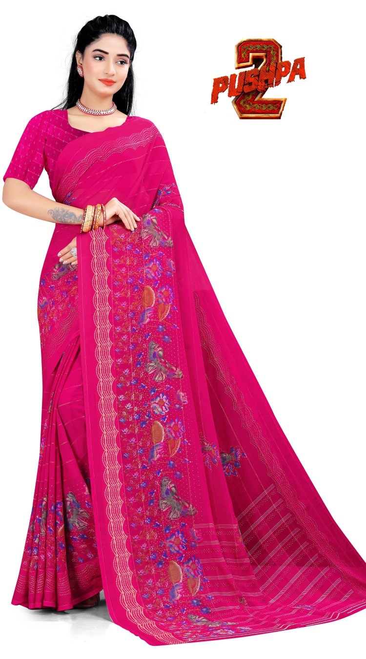 Pure Georgette Sarees, Motifs such as Deferrent Colours with Leafy Printed Design with Blouse, Colurs Available , More affordable but lightweight alternative
